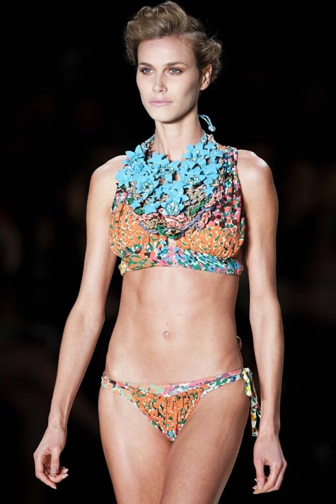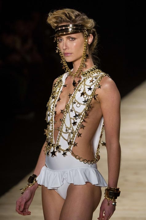Colores vivos, aplicaciones doradas, rayas y estampados adornan los biquinis, bañadores y triquinis que ha presentado la firma Movimiento en la Semana de la Moda de Sao Paulo. Esta es una muestra de lo que se llevará en las playas brasileñas el verano próximo. (Fotos: Agencias)